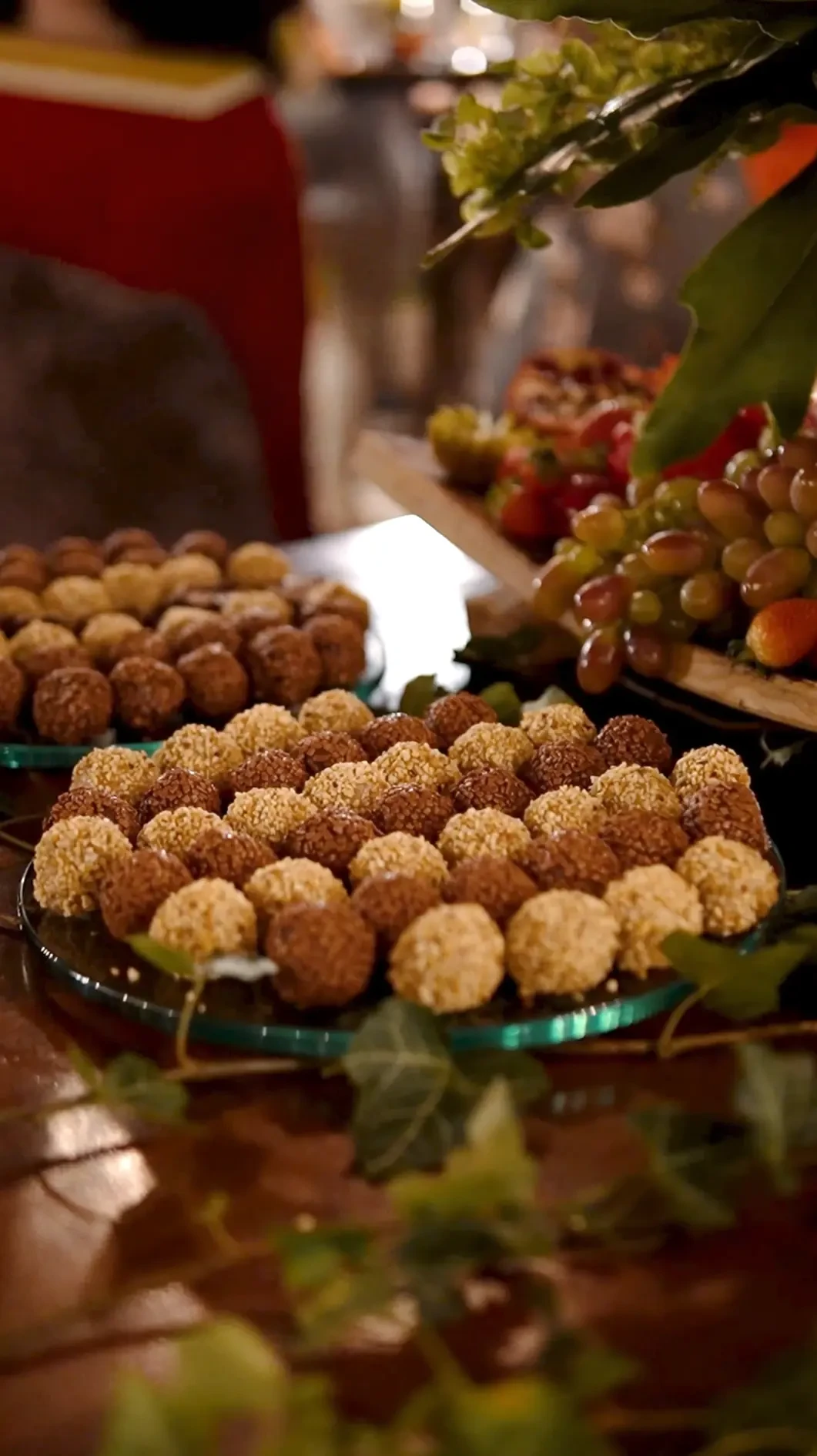 Mesa de frutas e doces: